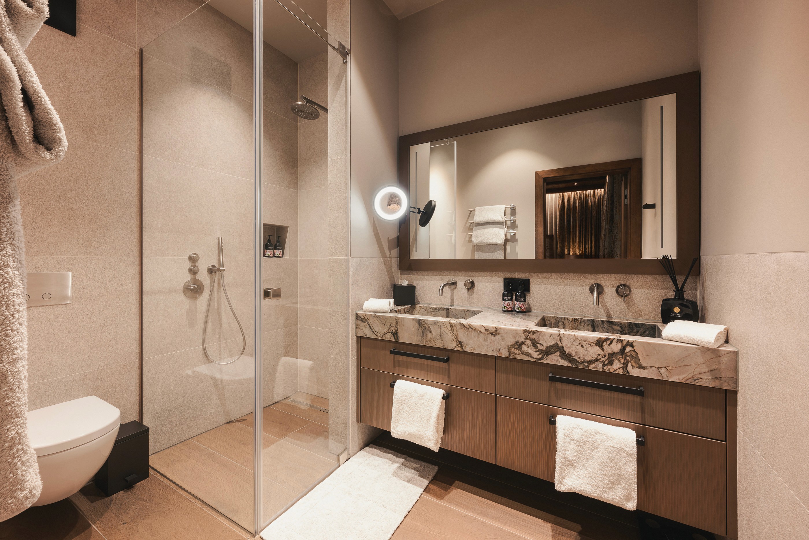 Steinlodge offers six luxurious suites plus a children’s suite, each with an en-suite bathroom. In total, the chalet comfortably accommodates 14 guests, combining privacy, elegance, and
